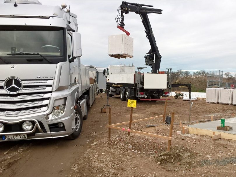Im Jahr 2013 haben wir uns auf Baustofftransporte mit eigener Entladetechnik spezialisiert. Ein Lastzug mit Mitnahmestapler im nationalen Fernverkehr und Benelux sowie ein Kranzug im Nahverkehr sind im kleinen Fuhrpark.